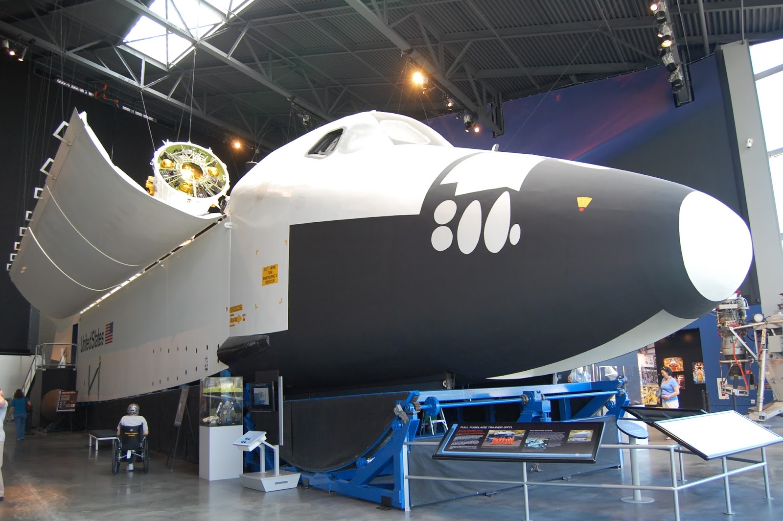 Space shuttle above. Air Force One (used by Eisenhower, Kennedy, Johnson, & Nixon) and the Concorde below. Very fun going through these planes.